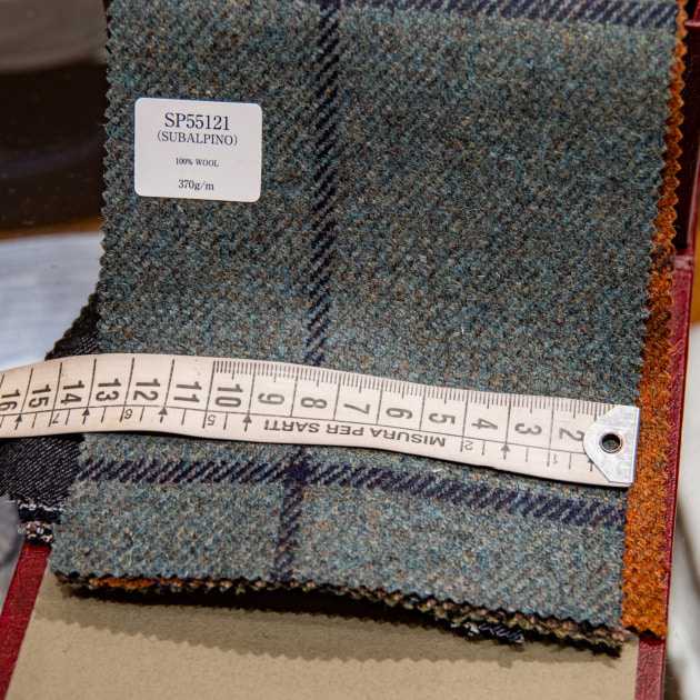 320gと中々の重量感ですが、そこは流石イタリア生地メーカー。リアルなツイードに比べ、とても柔らかく仕立ております。仕上がりの着心地も軽そうです。