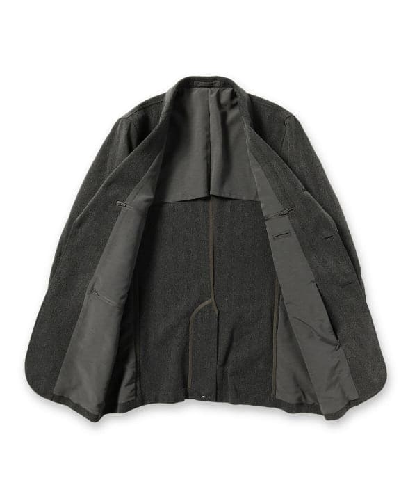 肩周りなどは、セットインスリーブ(肩から脇下にかけて垂直に袖付けされている)仕様に、ラグランスリーブと比べ、肩の形が通常のジャケットの様にハッキリわかる形となっております。