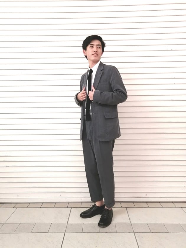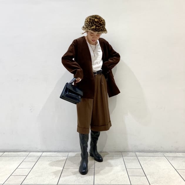上半身がスタイリッシュに見えるので、トレンドでもある、ワイドパンツ、ワイドテーパードパンツ、と合わせて頂いても、全身のバランスよくスタイリングして頂けるかと思います。
