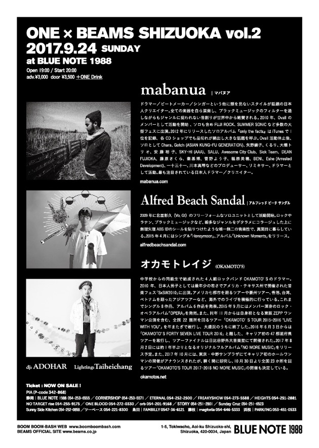 頂-ITADAKI-を主催するBOOMBOOM-BASHが開催している「ONE」とビームス 静岡が一緒にイベントを開催。