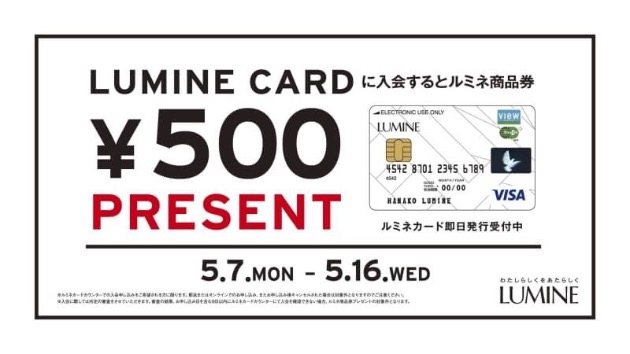 また、まだルミネカードを持っていない方も只今の期間はカード作成で更にお得なキャンペーン実施中!