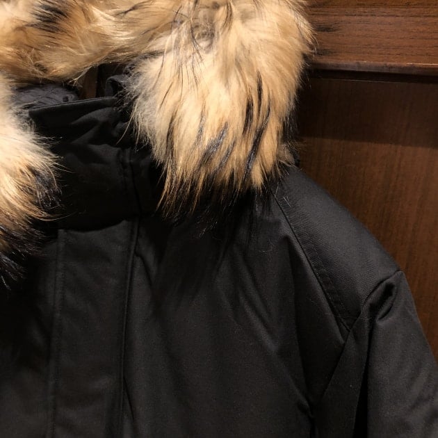 ファー、腕のロゴ、ボディーと全てをブラックに統一したモダンな一着です。