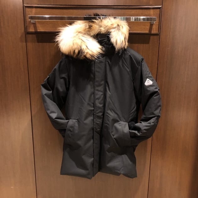 ファーがなくすっきりとしたデザインになっており、フードは取り外し可能で、ビジネス用にもお勧めです。