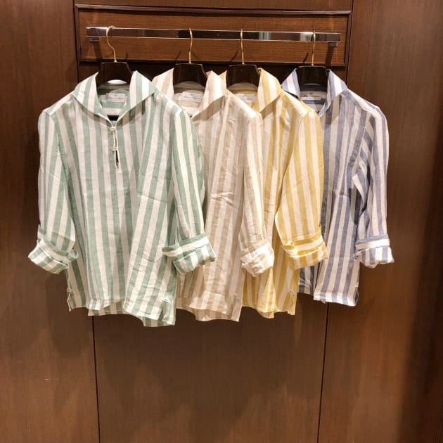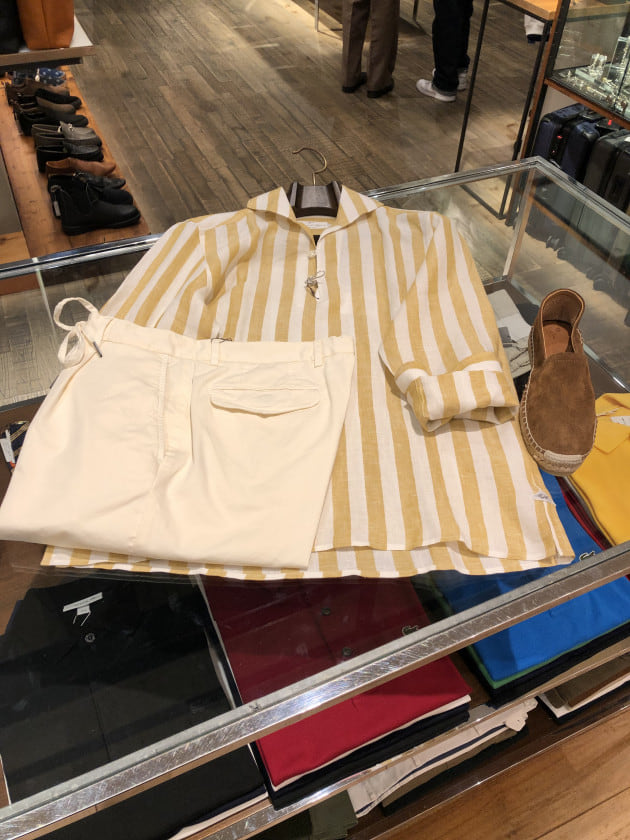 最近毎年定番みたいに目にしますがこのリネンシャツ達の雰囲気はこのブランドが突出してイイですよね。