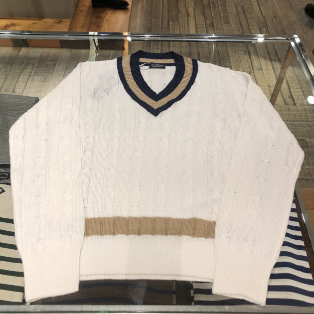こちらのグリーンはどこか柔らかさがあり、新鮮なチルデンニットに仕上がっています。