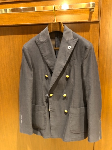 <LARDINI>グレージュカラーのピークドラペルジャケットです。