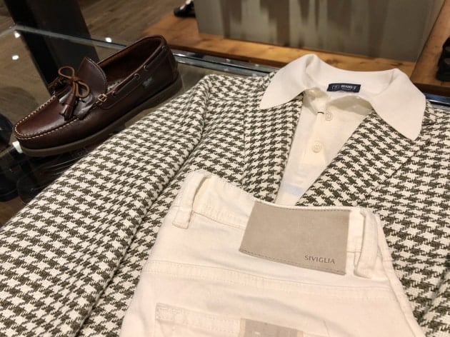 <T-JACKET>ハウンドトゥース柄のジャケット。