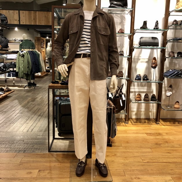 当店のマネキンはネイビー×ホワイトの合わせで着用。