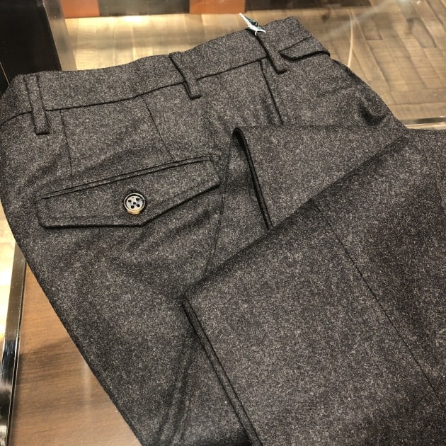 特徴的な裾のディテールもしっかり。丈詰め修理も可能ですので是非ご相談下さい。