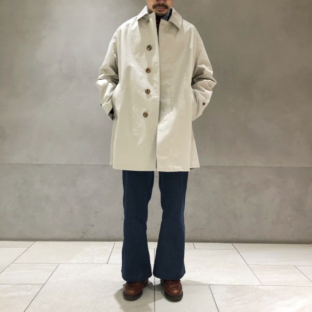 今回は別注により当時の形や生地を踏襲しつつ、ドレススタイルにも合わせやすく現代的にアップデートしております。