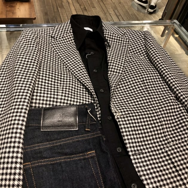 お次はツイードジャケットで…