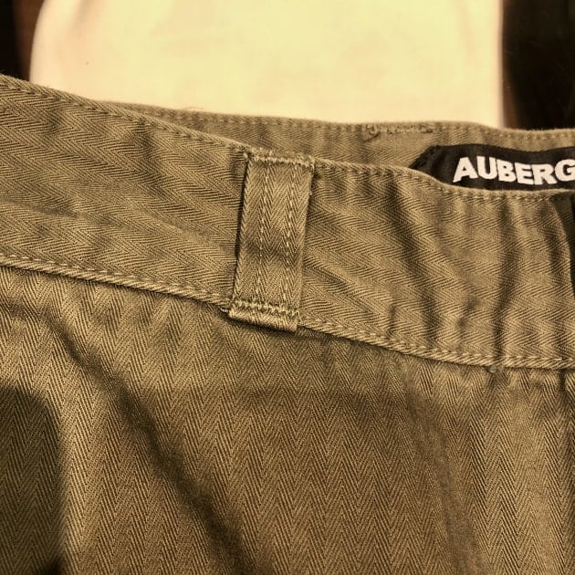 擦れやすいヒップ部分には当て布がついています。このあたりもミリタリーパンツの名残ですね。