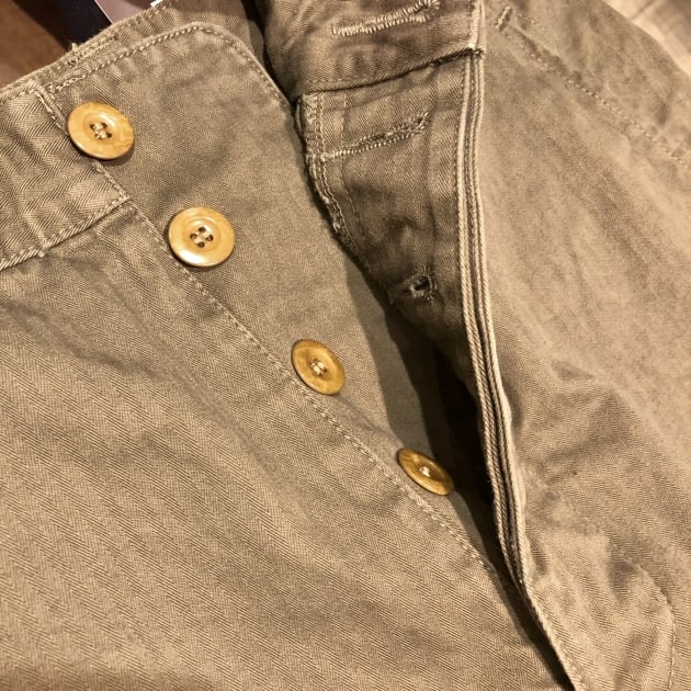 フロントは比翼式のボタンフライです。トップボタンが1つなのも後期型の特徴ですね。