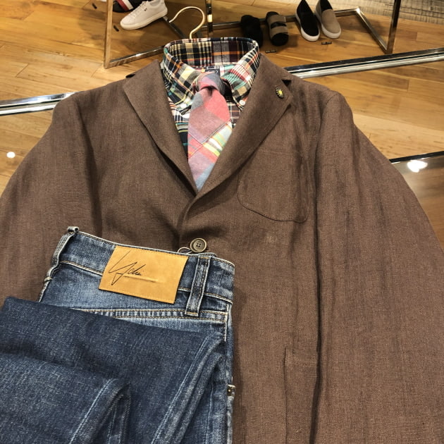 かなりシンプルな合わせですが、ジャケットが引き立つコーディネートになります。
