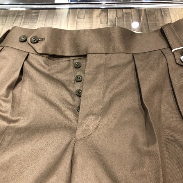 ミリタリーとドレスパンツを合わせたようなイメージのパンツです。