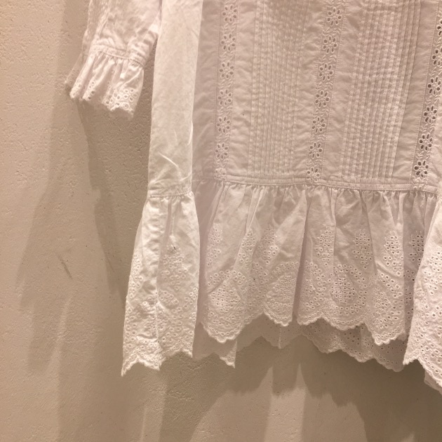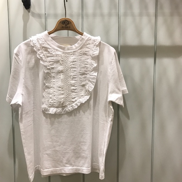 ちょうど胸元から腰に掛けてふんわりとレースがアクセントとなります。