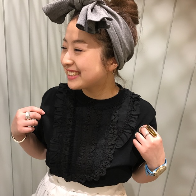 ホワイトとブラックで胸元のレース部分も統一されております。