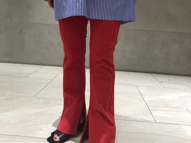 たしかに、、70年代漂うシルエットですよね!程よいフレア加減にセンタープレスが入っており、履き心地も抜群なんです!