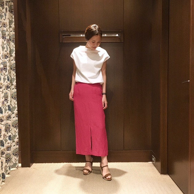 シルエットはボックス的で、タックインスタイルにもおすすめです。