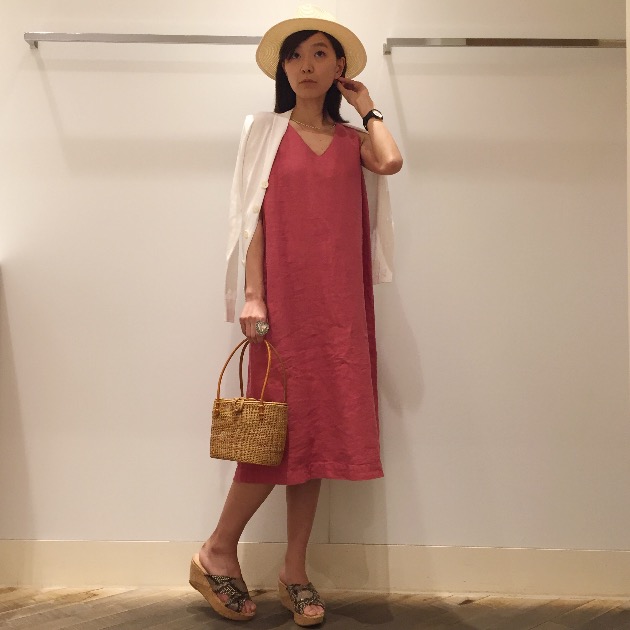 夏に大活躍しそうな、シンプルなデザインのワンピース。