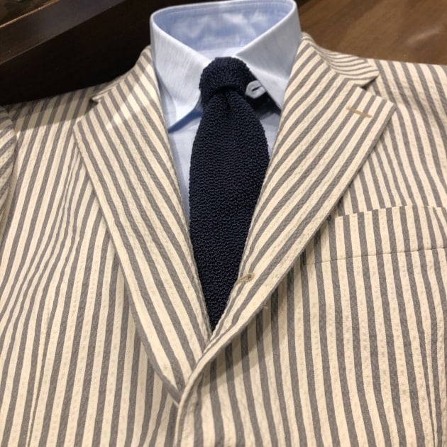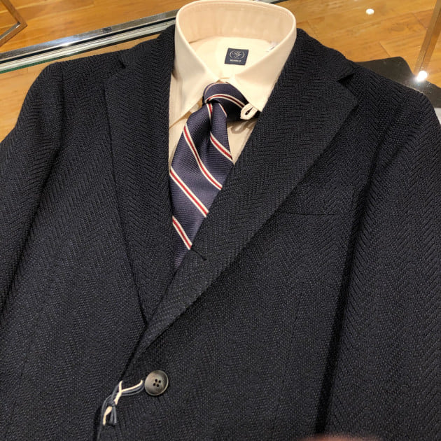 こちらは先程のストライプよりはやや砕けたコーディネートにもお使い頂けるかと思います。