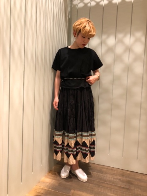 〜ネイティブ柄のスカートを主役に、邪魔しない、でも存在感のあるTシャツ、どや〜