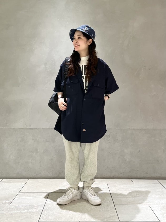 ワークシャツの方は、スウェットパンツと合わせラフなスタイリングに♪