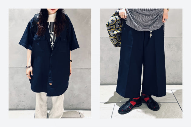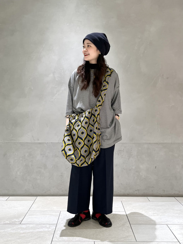 パンツはワイドシルエットですが、テロンッとした素材感ですので、スタイリッシュな雰囲気にも持っていける万能アイテム!!!