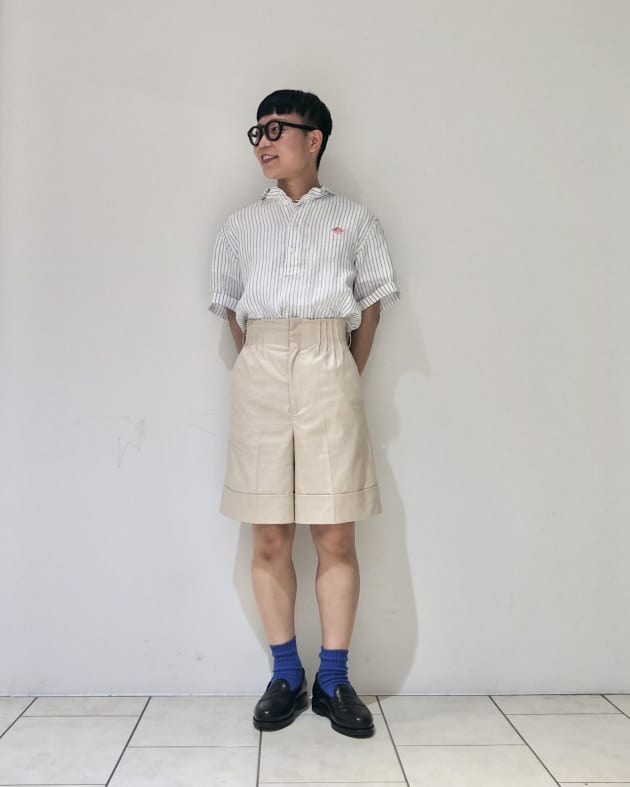 特にこちらはコットンポリエステル素材で、さらりと、そしてカラッと、汗をかく時期でも快適に着られるのが嬉しい1枚です。
