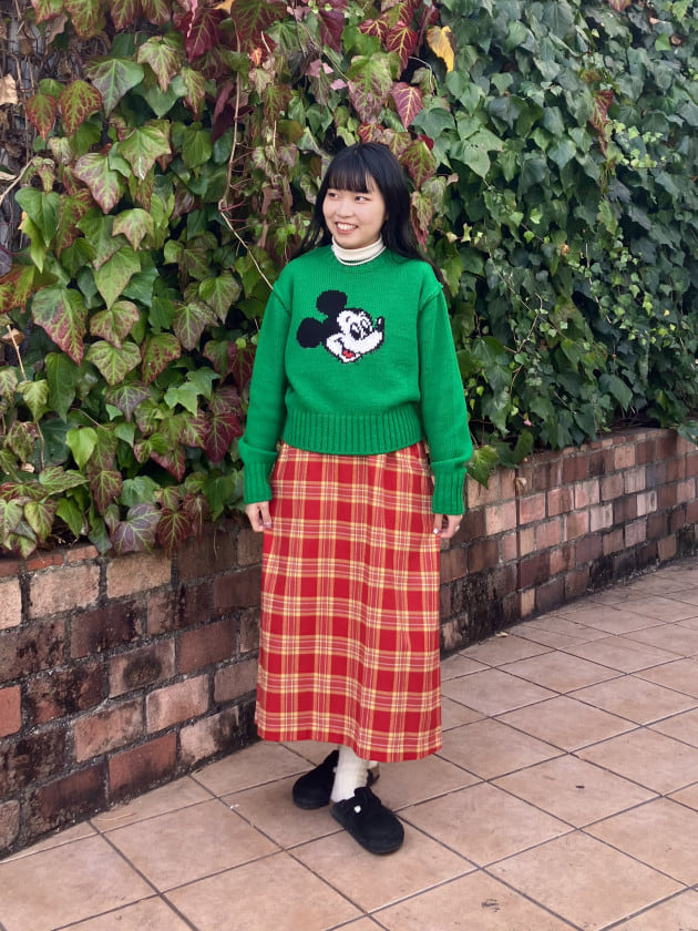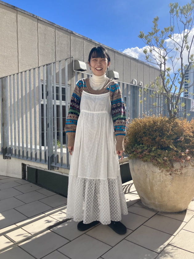 セーターも首元が大きくあいたデザインなので、色んなインナーを組み合わせて遊んでみてほしいです〜◎