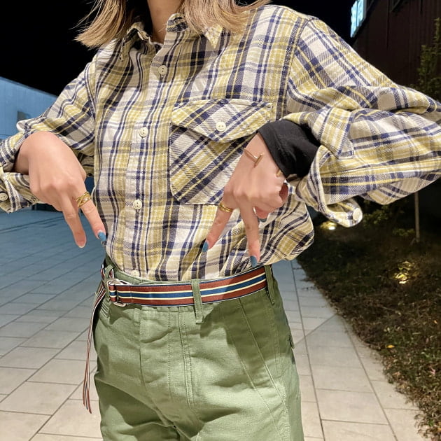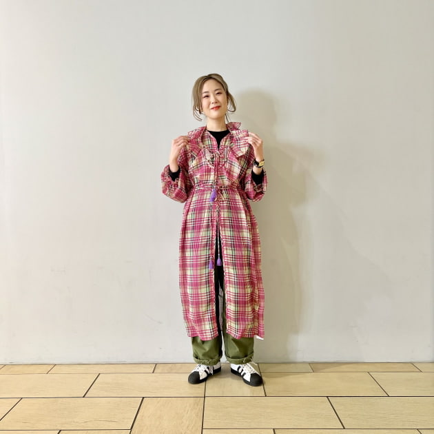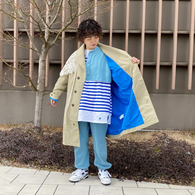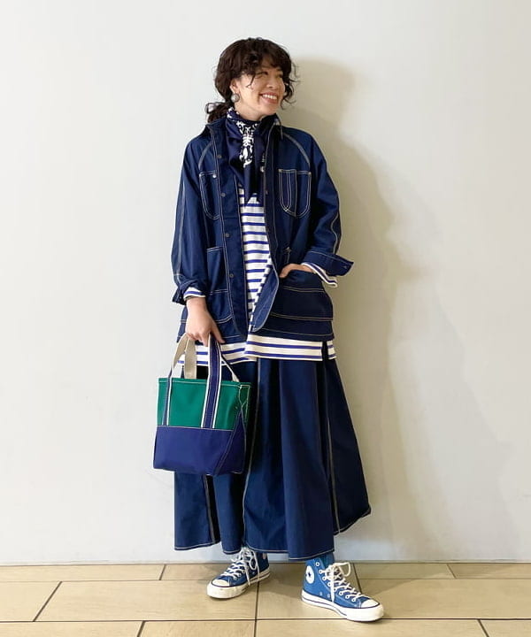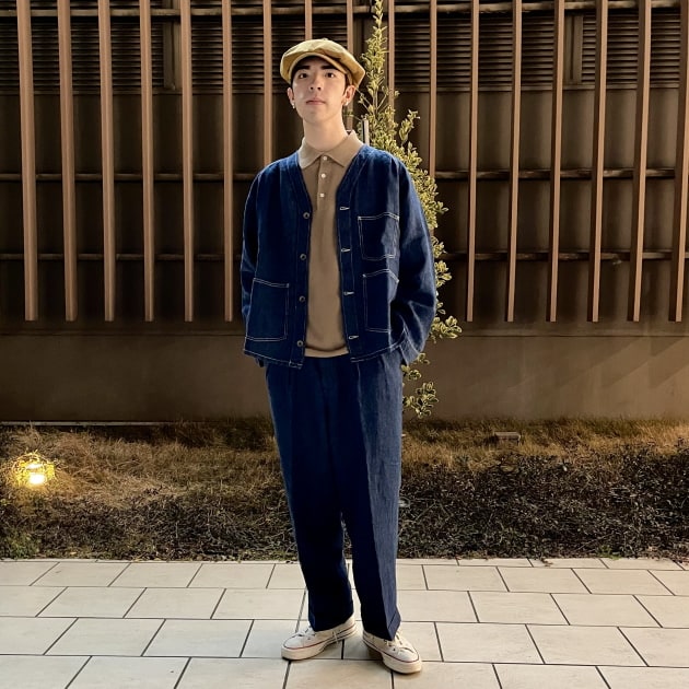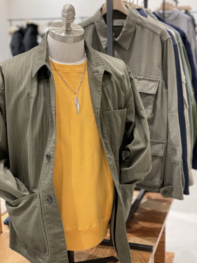 ミリタリーベースのカバーオールジャケットは今シーズンBEAMS PLUSの新作。そこに人気のREMI RELIEFのスウェットにインディアンジュエリーと、まさにビームス 辻堂らしい組み合わせ。