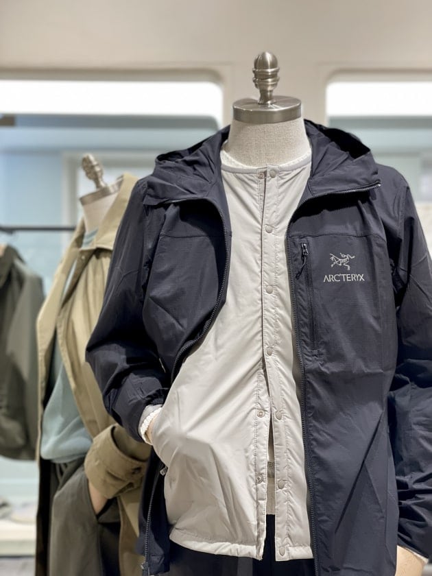 快適な着心地と持ち運びのしやすさで人気のARC’TERYXのスコーミッシュフーディーに、インナーダウンを合わせた大人のアウトドアスタイルをイメージさせるアイテム。その他アウトドアブランドのアイテムも続々入荷中!