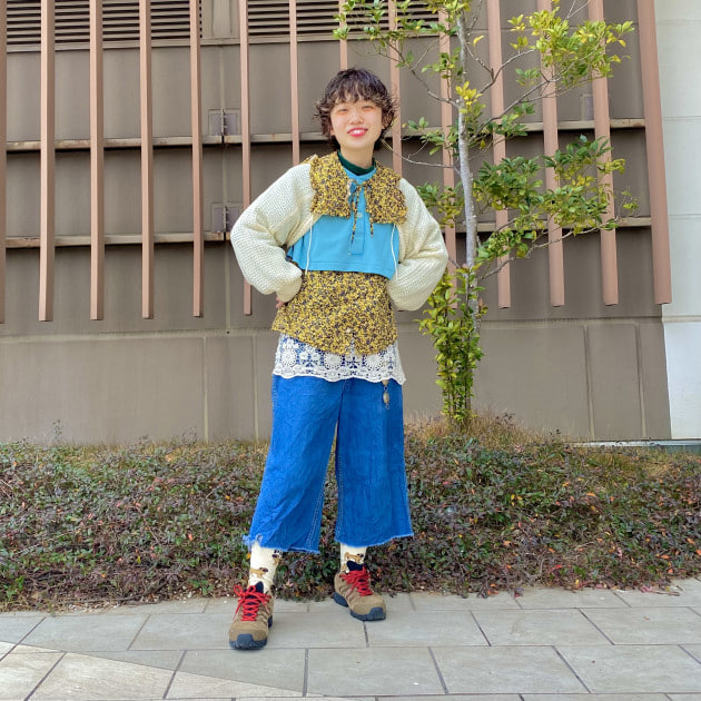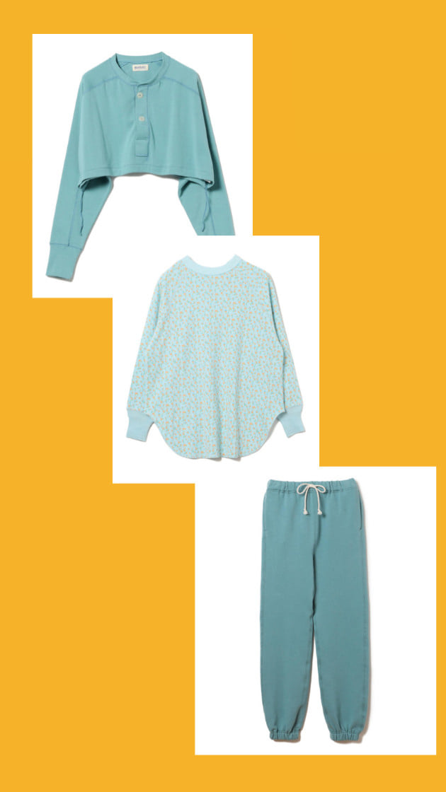 タイドアップなどの定番の組み合わせではなく、カレッジプリントのアイテムやスウェットを交えてスポーティーなスタイルに。