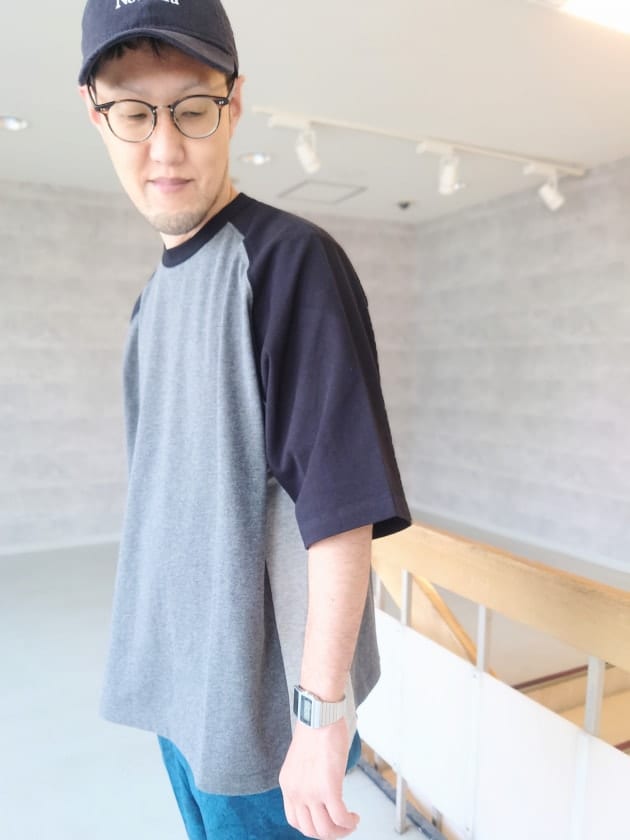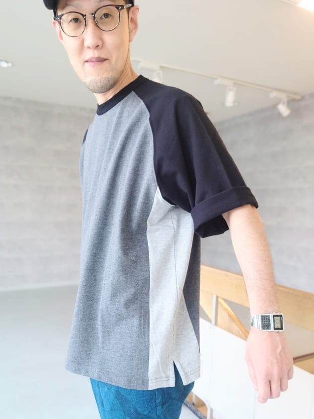 合わせたTシャツはビッグサイズの色の切り替えがオシャレなTシャツ。