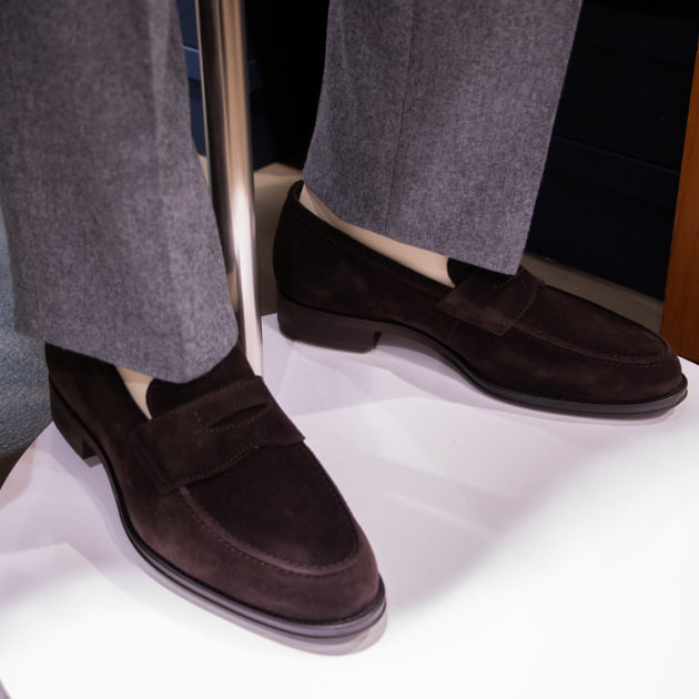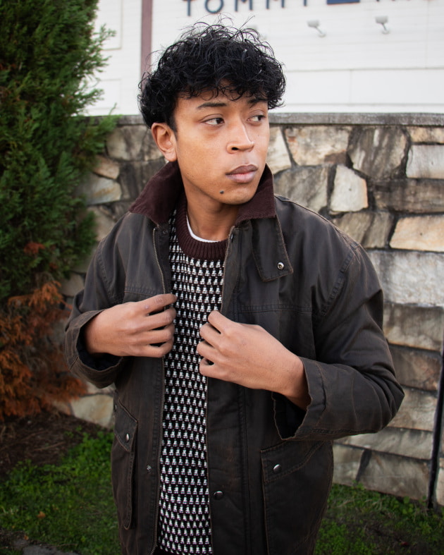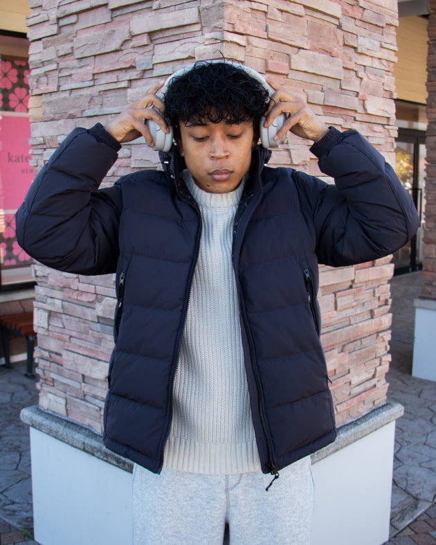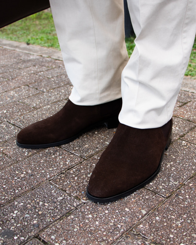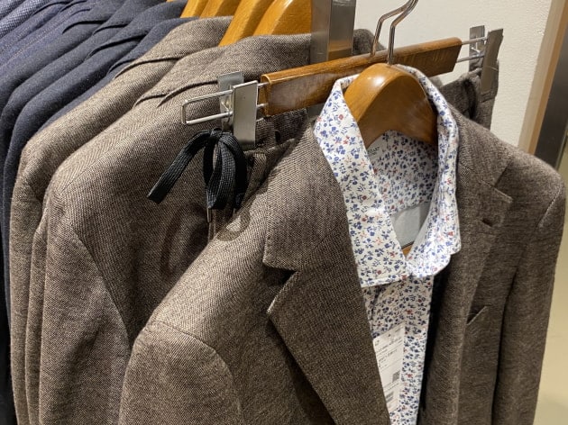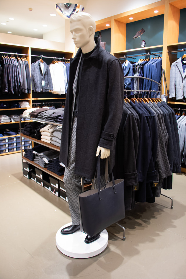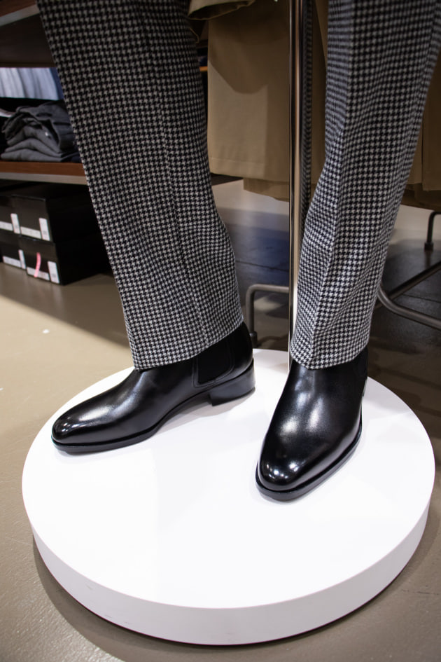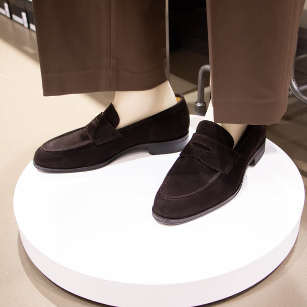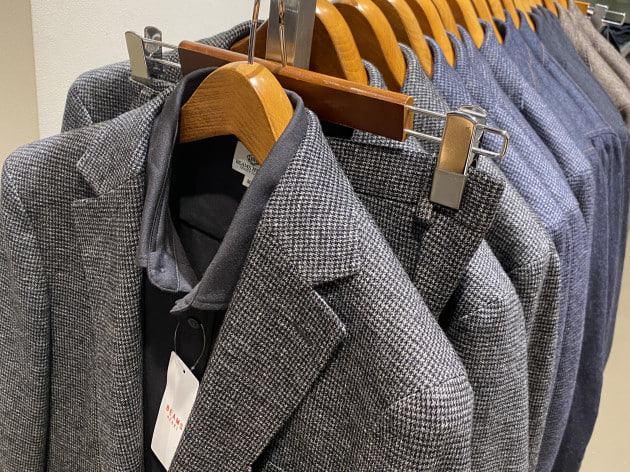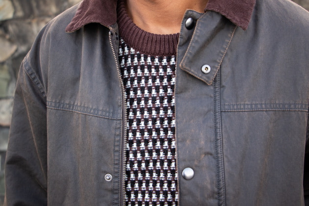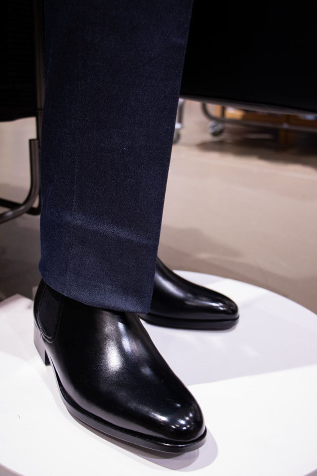 個人的にレザーや、ミリタリー由来のアイテムにはデニムやチノ、カーゴパンツ等ヘリテージなアイテムをを合わせたくなりますが、スタッフ楯はイージーパンツを合わせて軽快に合わせています。