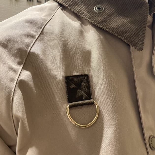 首元には風除けのチンストラップがございますので、スタンドカラーとしてもお召し頂けます。