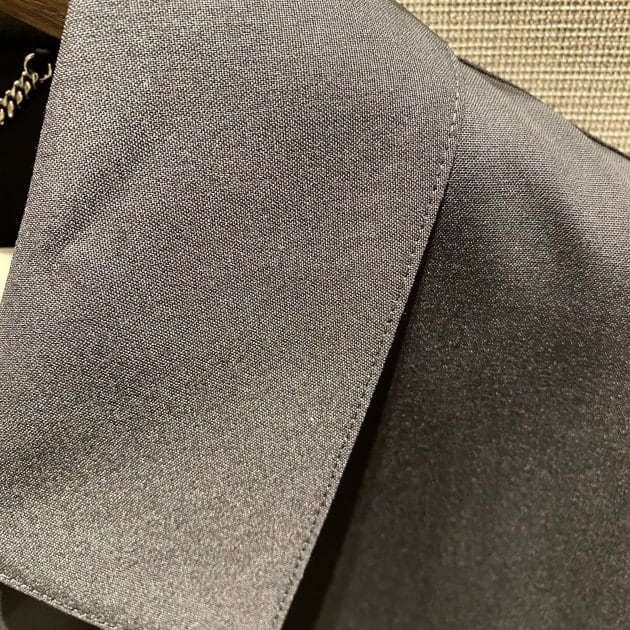 イタリー生地の様なしっとりした艶感とは違い、毛の油分がしっかりと乗ったほのかな光沢感ですので、結婚式等の"お喜び"だけでなく、告別式の様な厳かなシーンにも適応する印象です。
