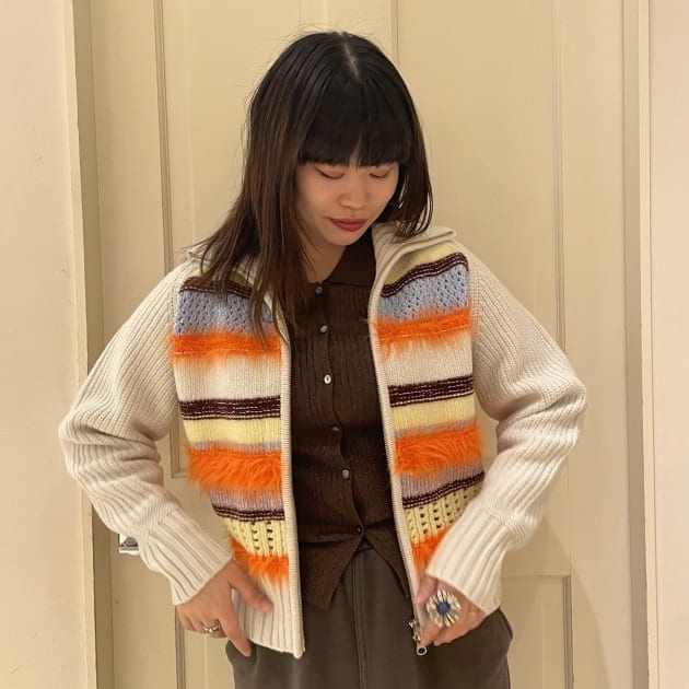 カラフルな色使いはそのままに、別注履歴では今回が初めての、フルジップタイプのカーディガンが登場しました〜!!=͟͟͞♡嬉