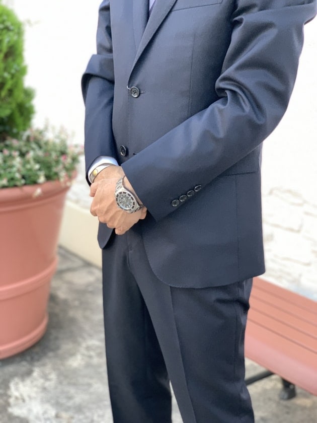 定番のこちらのコート、スーツの上に着るのを想定して作られている為、立体的なパターンとなっていて非常に羽織やすくなっています。