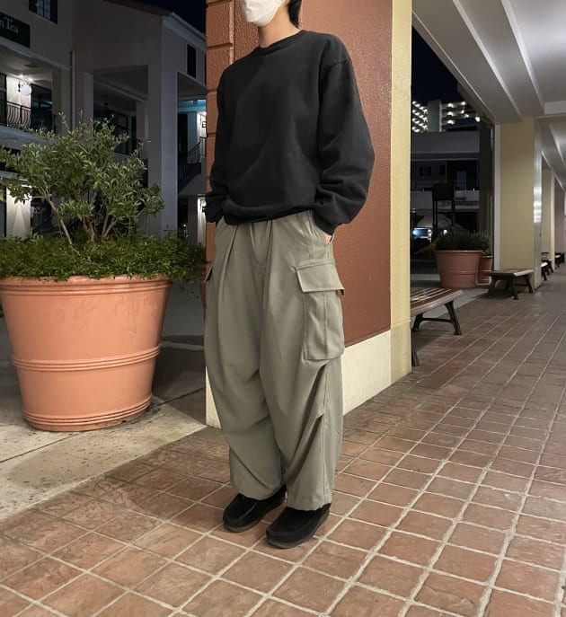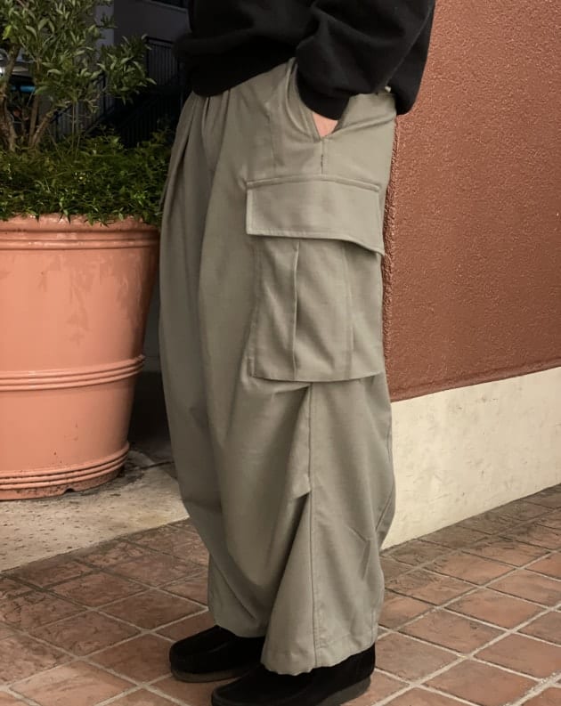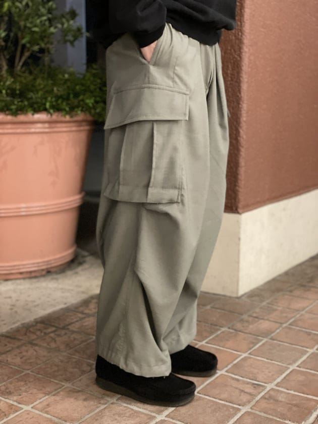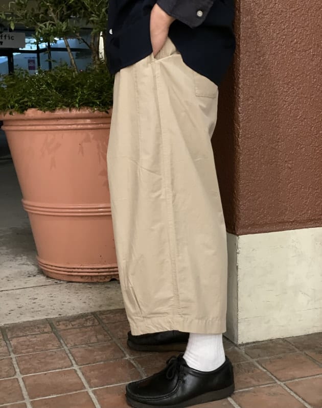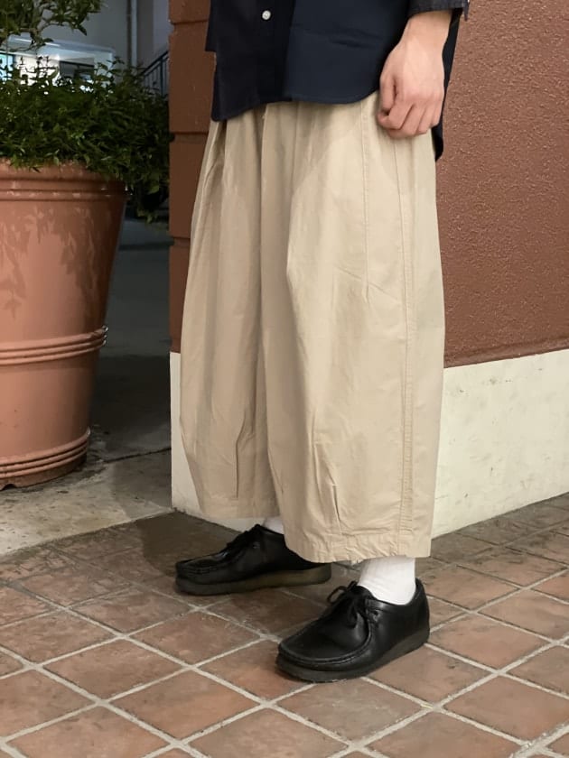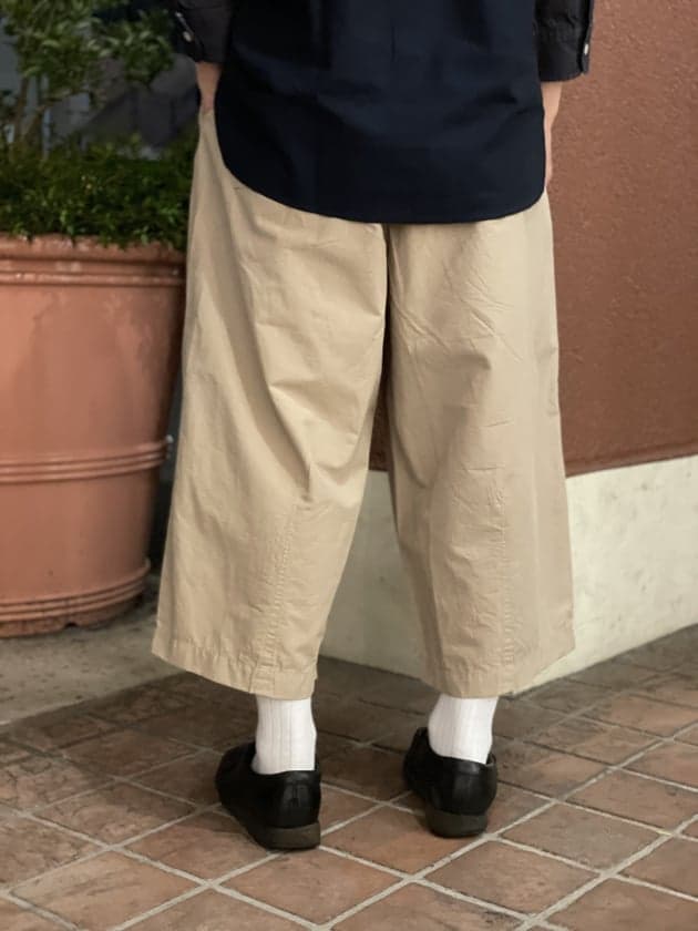 バルーンパンツ=ワイドでズルッとしていて、裾もたっぷり溜まっている‥そんなイメージが強いですが、夏使用の新作バルーンパンツはアンクル丈。