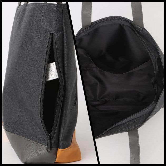店頭でも非常に人気でして、オンオフ兼用で使えるので幅広い方々にご好評頂いているトートバッグです。