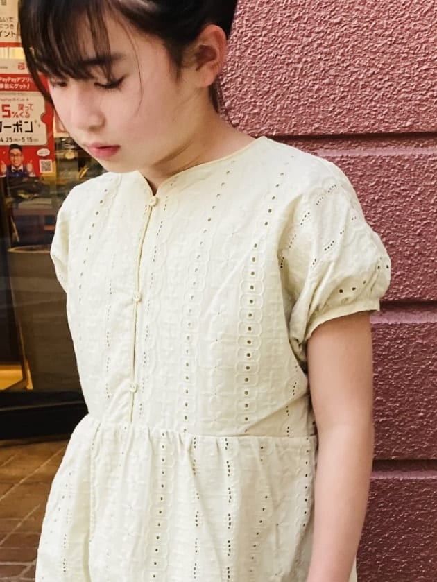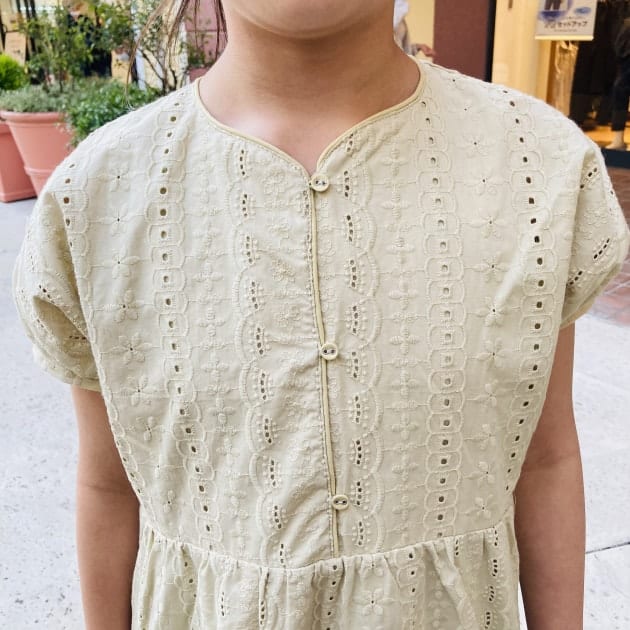 パンチングレースがとても女の子らしいデザインのワンピース。