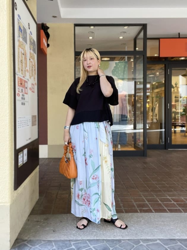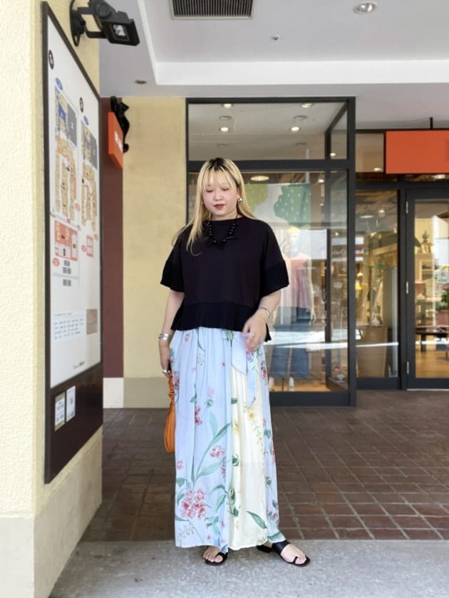 首元は深めにVネックなので、私は今回Tシャツを入れてカジュアルめなスタイリングに仕上げましたが、タンクトップやキャミソールで首元や鎖骨を見せてヘルシーに着てもまた良いですね◎