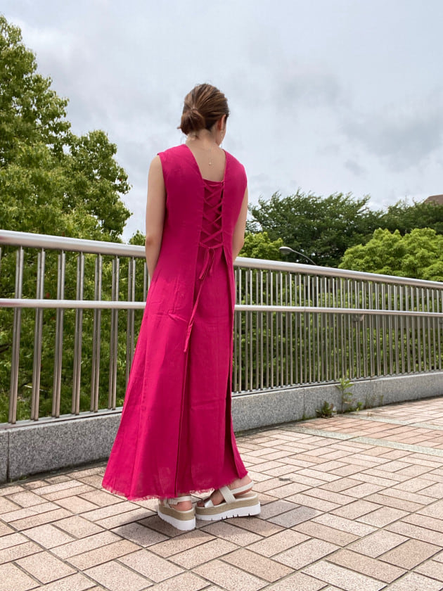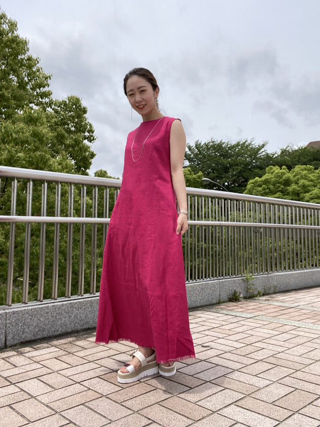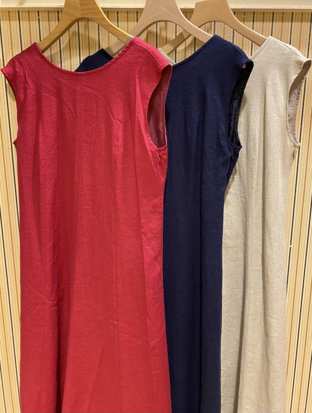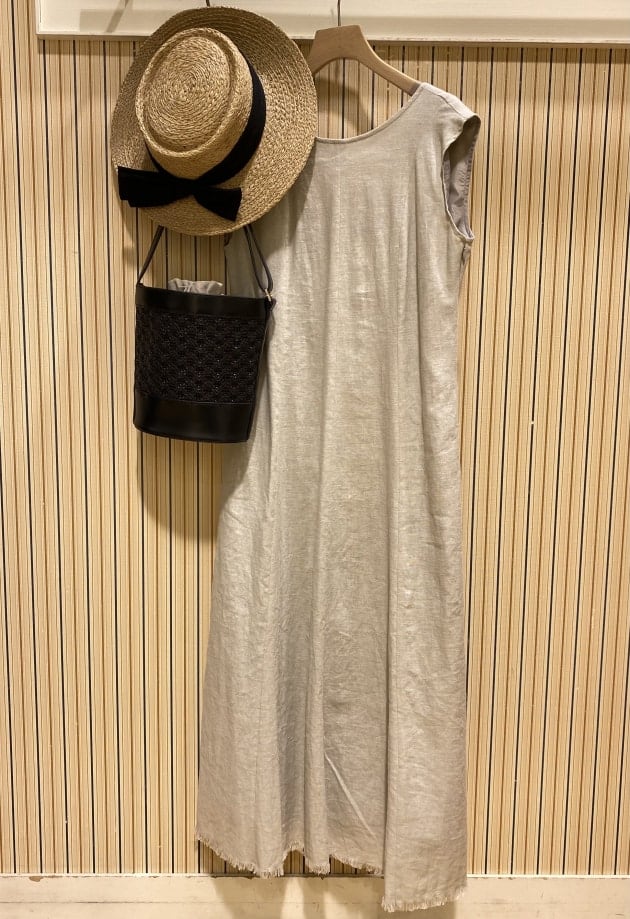 何とも涼し気!夏にピッタリな麻混ワンピース。シャリッとサラッとした麻特有の涼しさが季節にピッタリ。