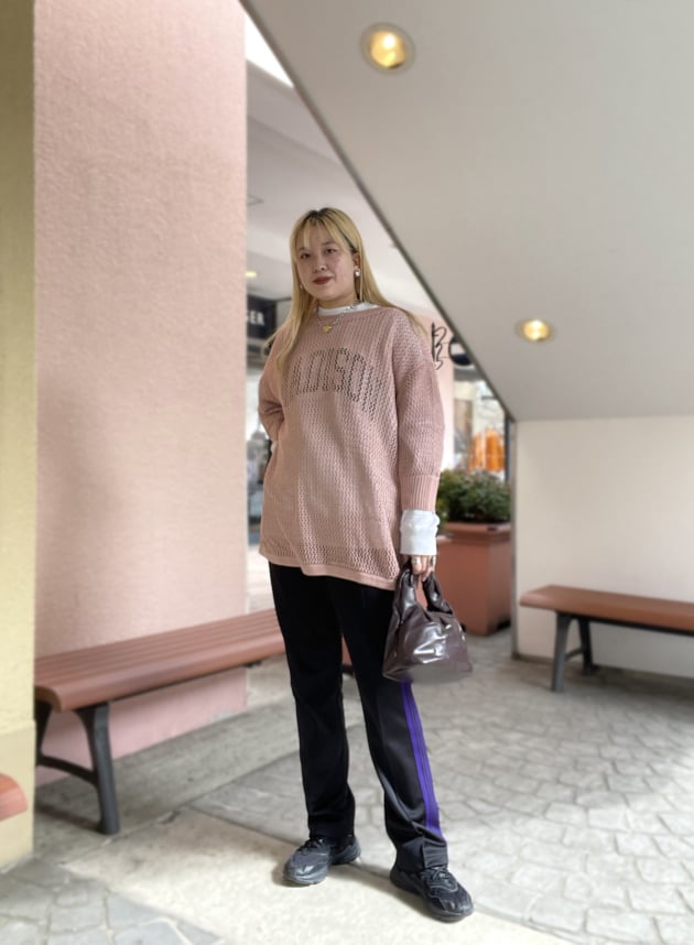 私はインナーにカレッジのスウェットを着ています!スウェットも着られるくらいのゆったりサイズです。さりげなーくロゴが透けて見えるのが可愛いです。
