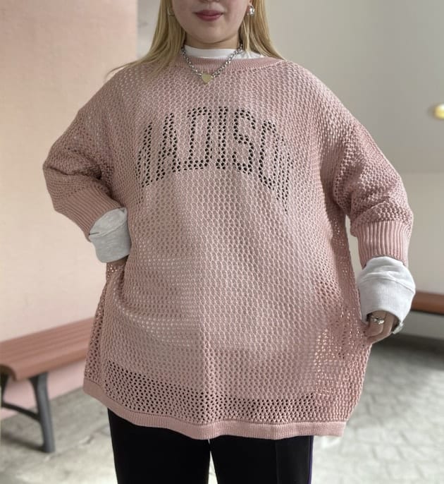 とにかくこちらのメッシュニット、インナー遊びが楽しくなるスタイリングが楽しくなるニットなんです!