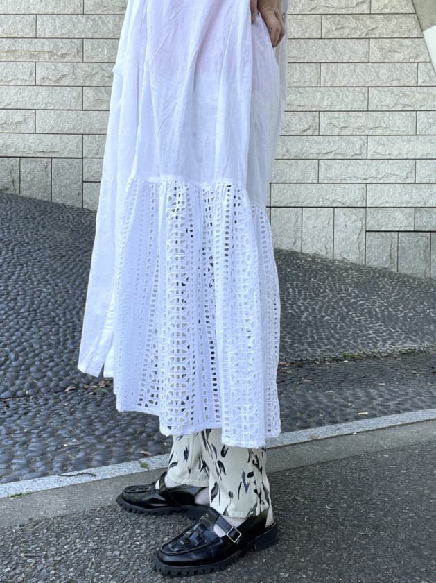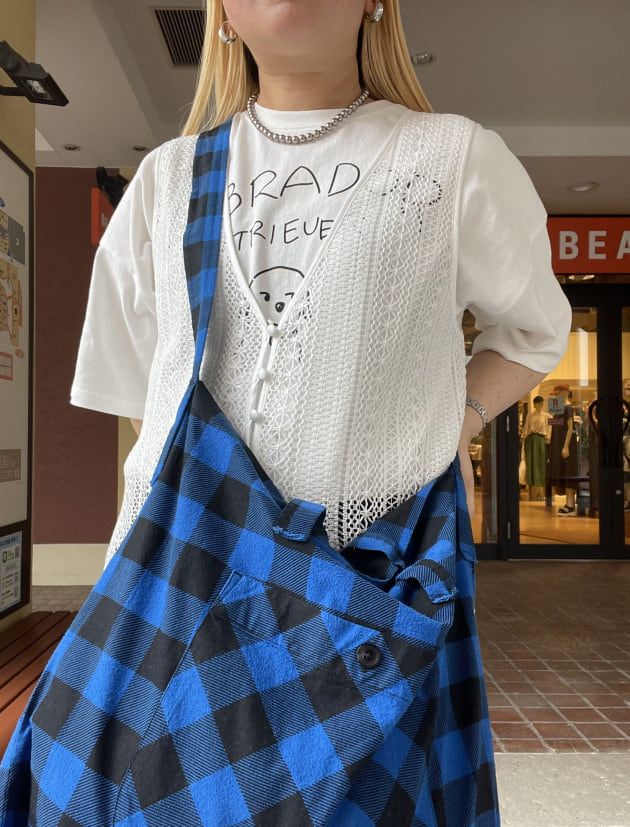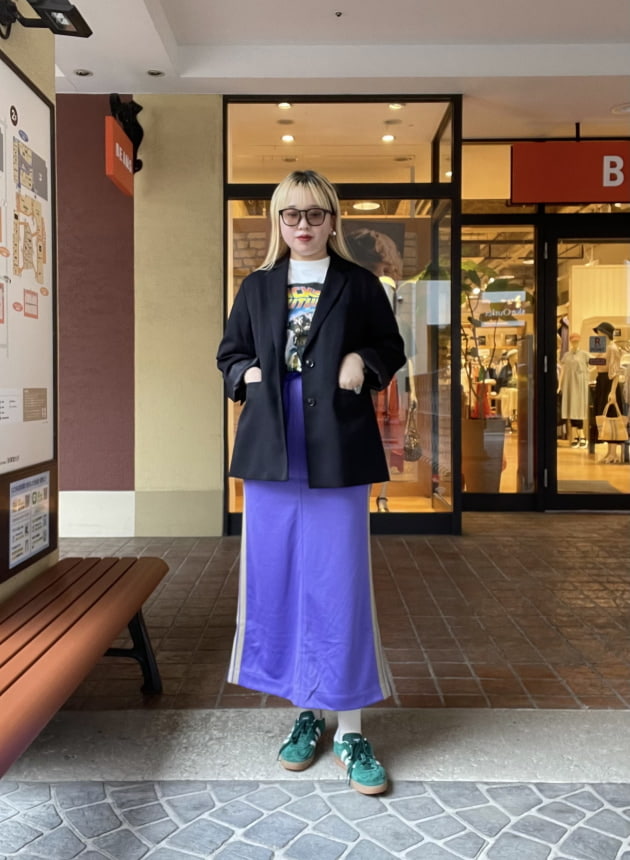 合わせ方は色々ですが、メンズっぽくなり過ぎないようにボトムスは甘めなチュールスカートで合わせてみました。