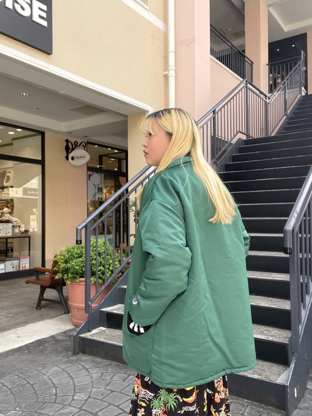 サイズはフリーサイズのワンサイズ展開です。とてもゆったりしており、中にもバッチリ着込めるくらいゆとりがあります。