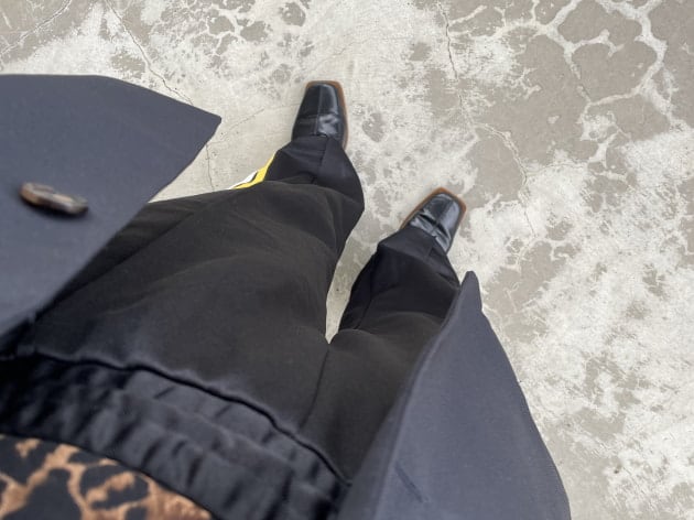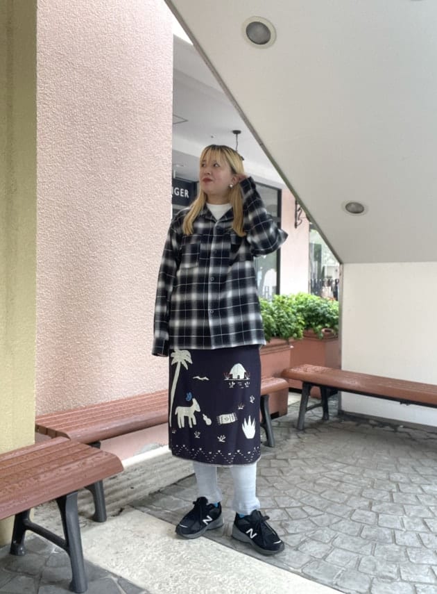 着丈は私の身長で膝上くらいの長さでした。お尻はこのようにスッポリと隠れます。