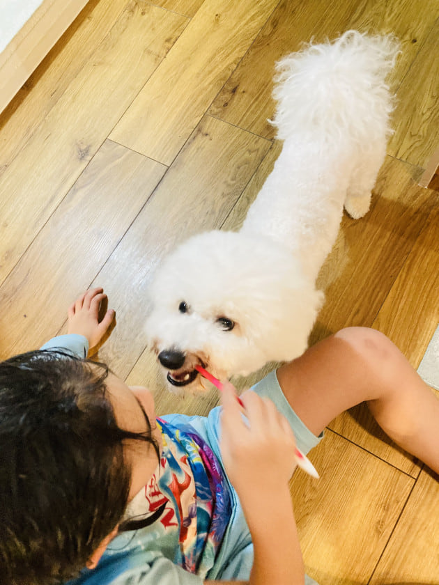 マハロは、ご飯の時間が近づくと分かるみたいで、餌が置いてあるパントリーの前に待機します。
